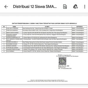 Daftar pendistribusian 12 siswa yang tidak terdaftar di dapodik