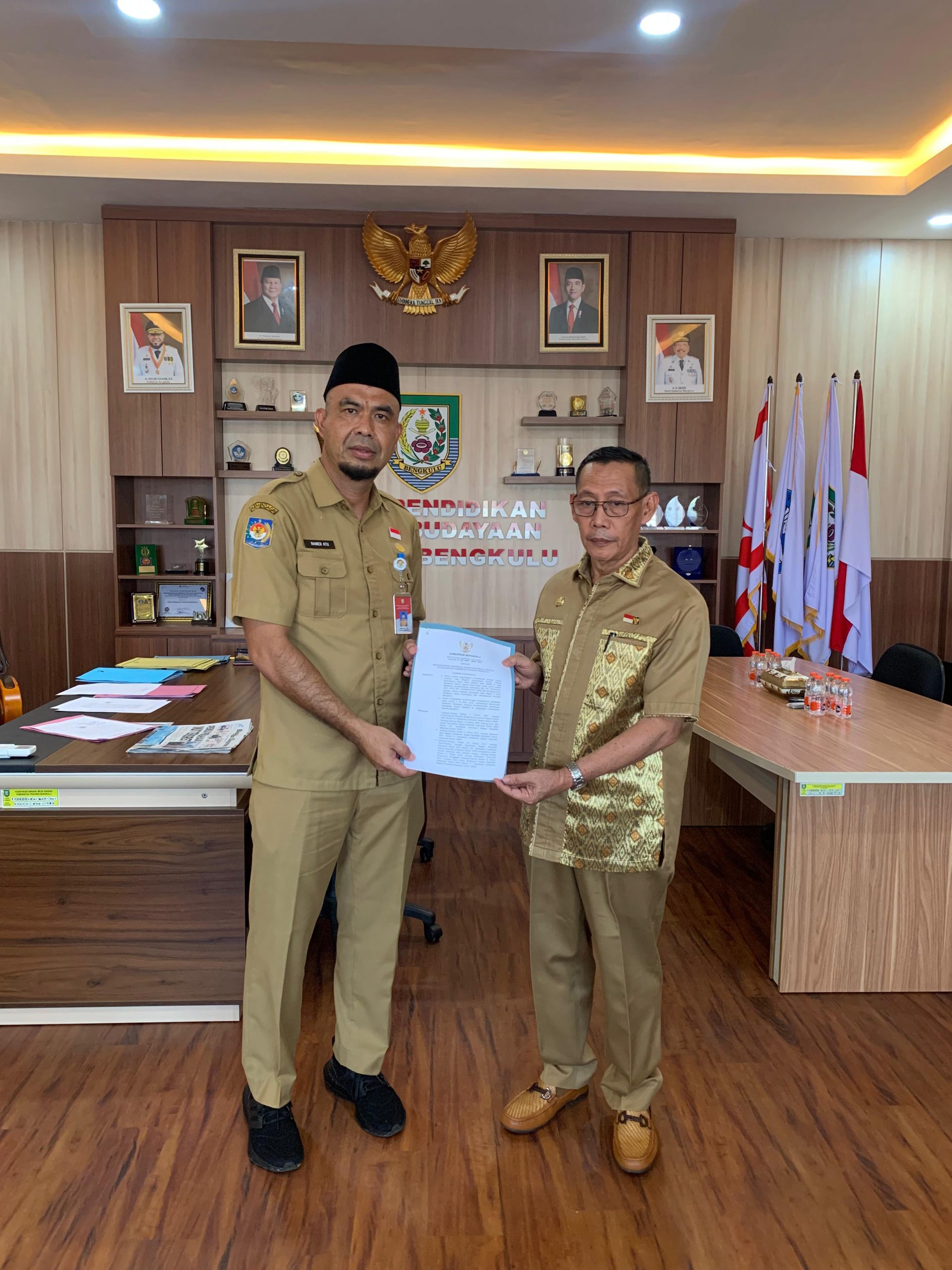 Surat Pemberhentian sementara tersebut diserahkan PLT Kadis Dikbud Provinsi Bengkulu Rainer Atu kepada Bihan Nudin.
