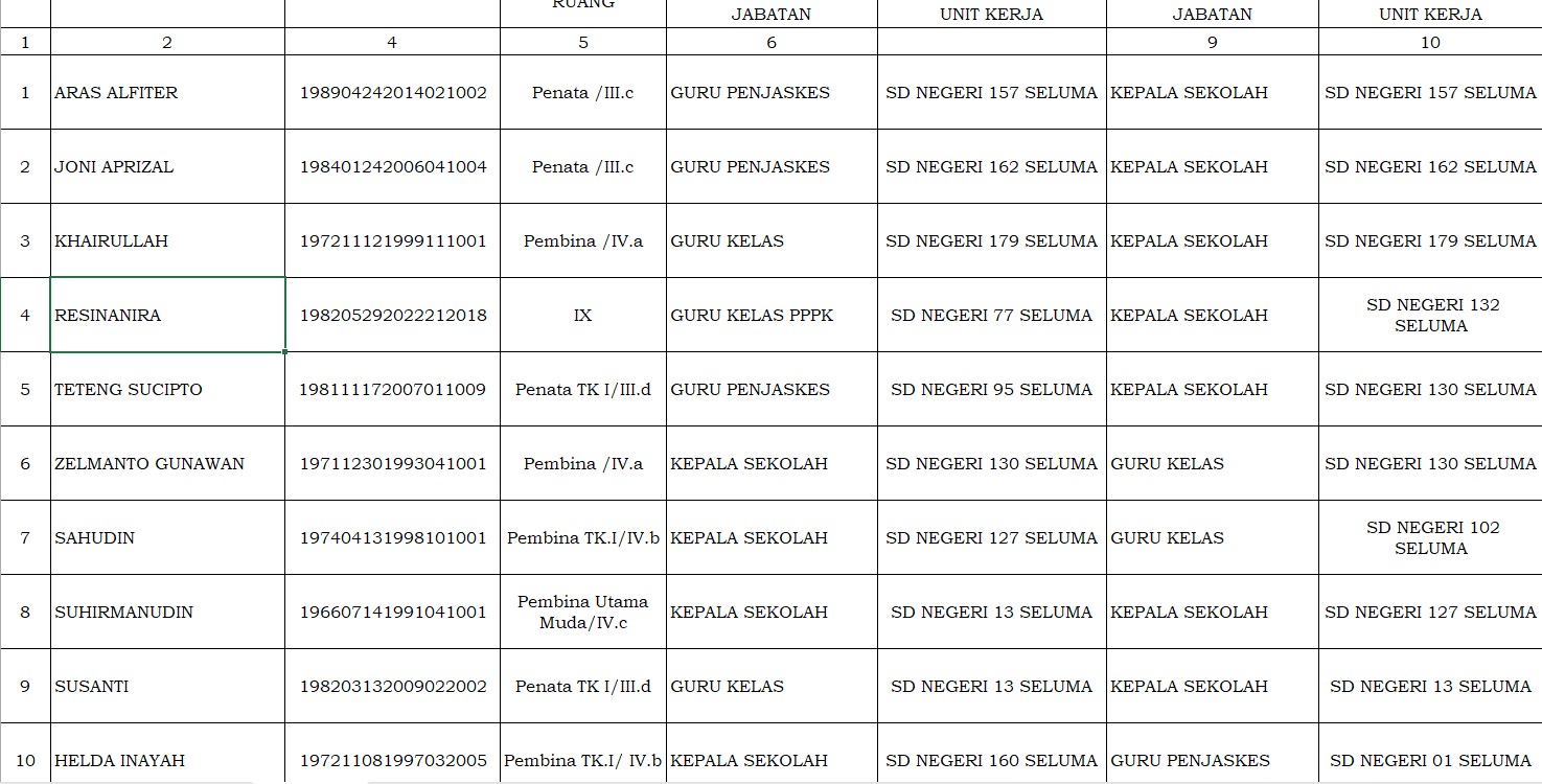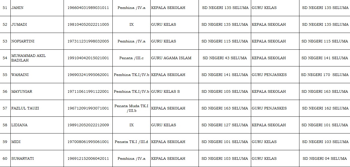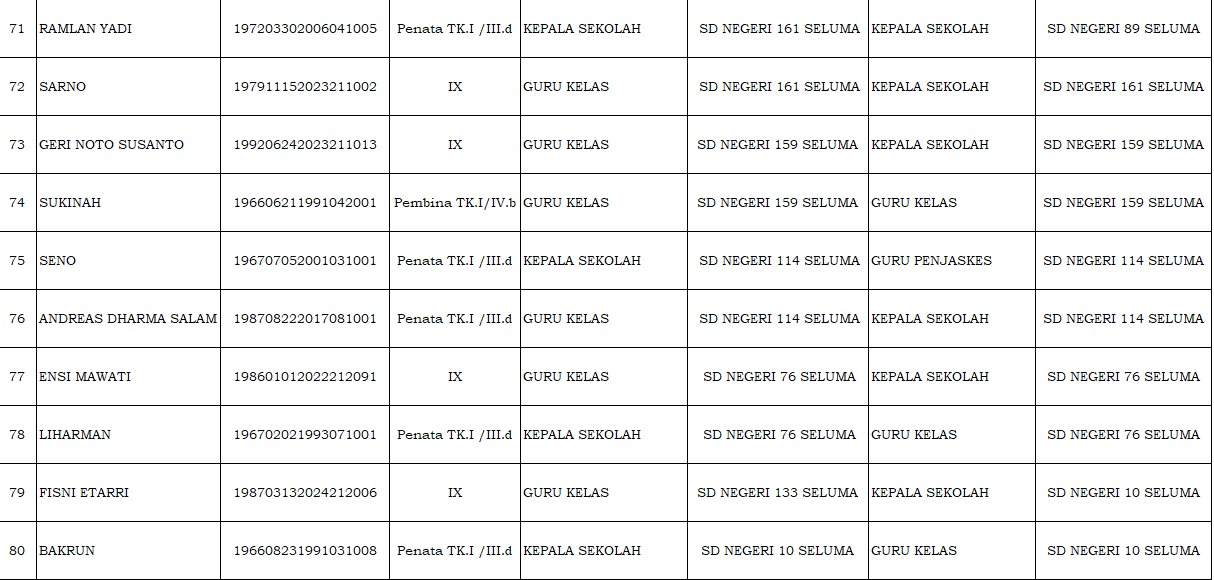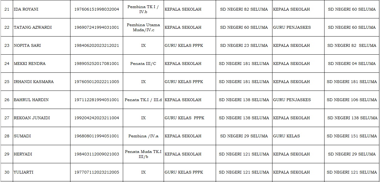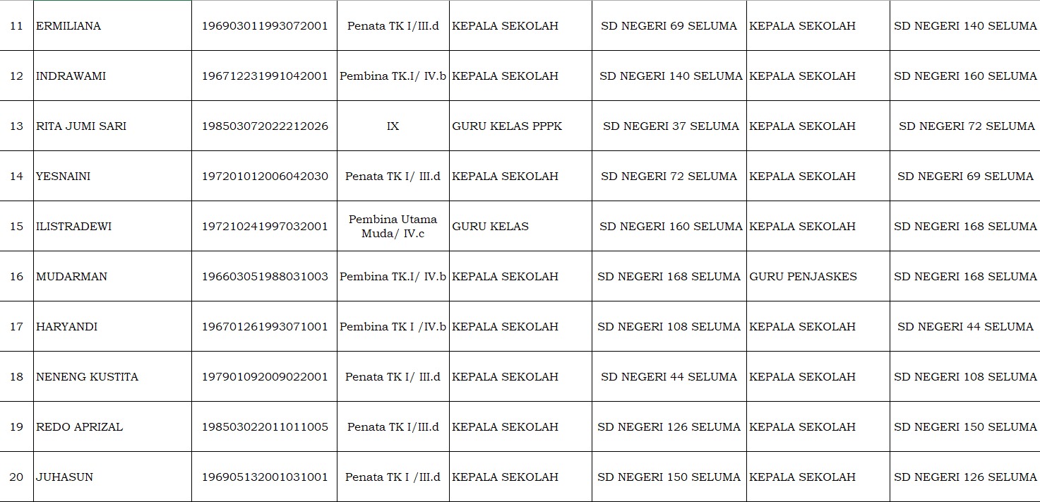 Daftar Nama Kepala Sekolah dan Guru SD di Kabupaten Seluma yang Terkena Mutasi