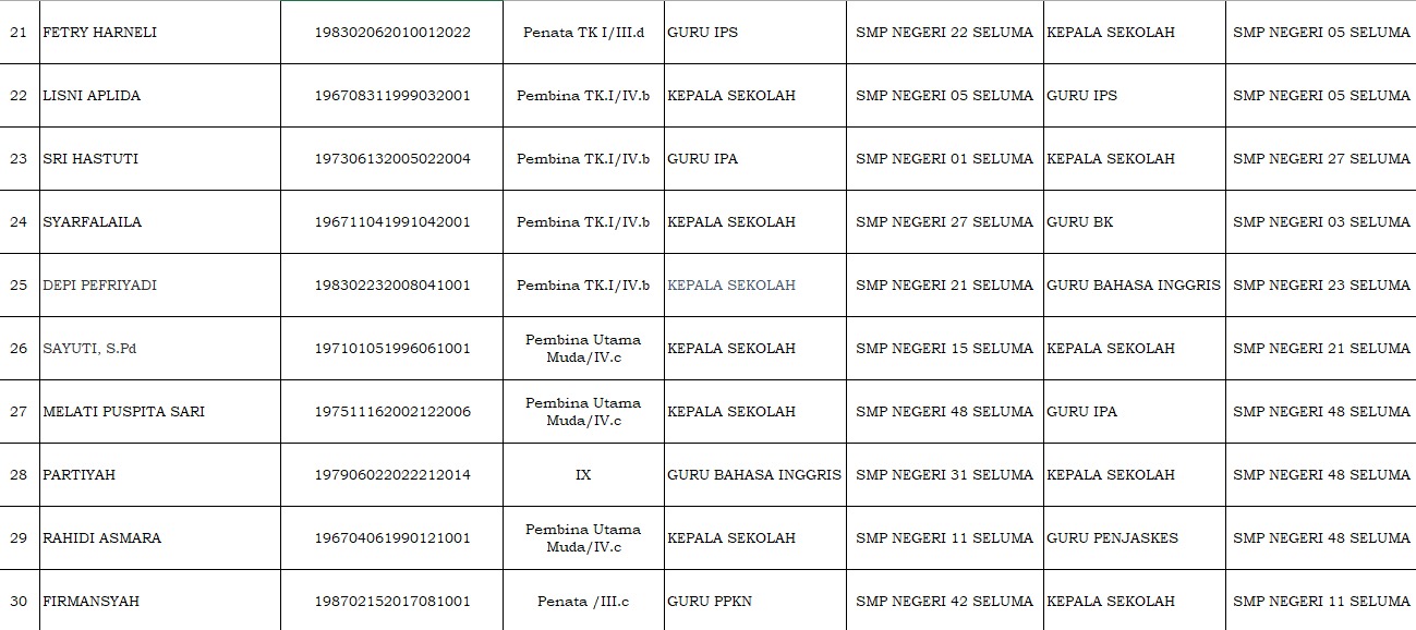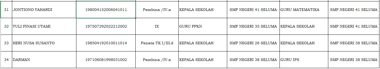 Daftar Nama Kepala Sekolah dan Guru SMP di Kabupaten Seluma yang Terkena Mutasi