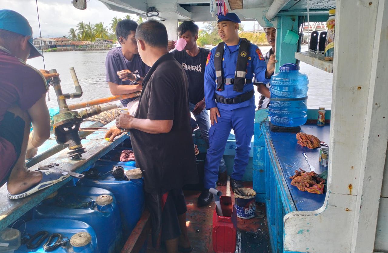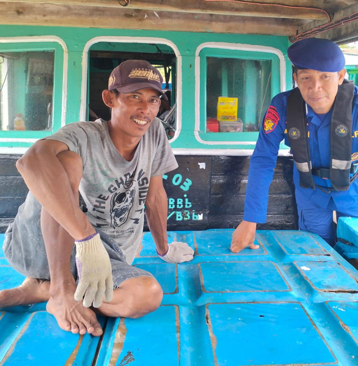 Personel Ditpolairud Polda Bengkulu, Aipda Arif dan Briptu Yafisman, mengimbau kepada ABK kapal nelayan untuk selalu memperhatikan alat keselamatan saat berlayar di atas kapal.