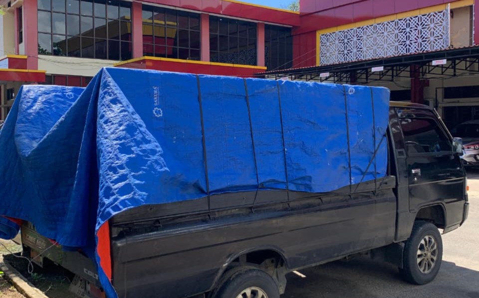Untuk melancarkan praktik curangnya, BI menggunakan kendaraan bak terbuka yang bagian belakangnya telah tertutup rapat oleh terpal untuk mengelabui petugas.