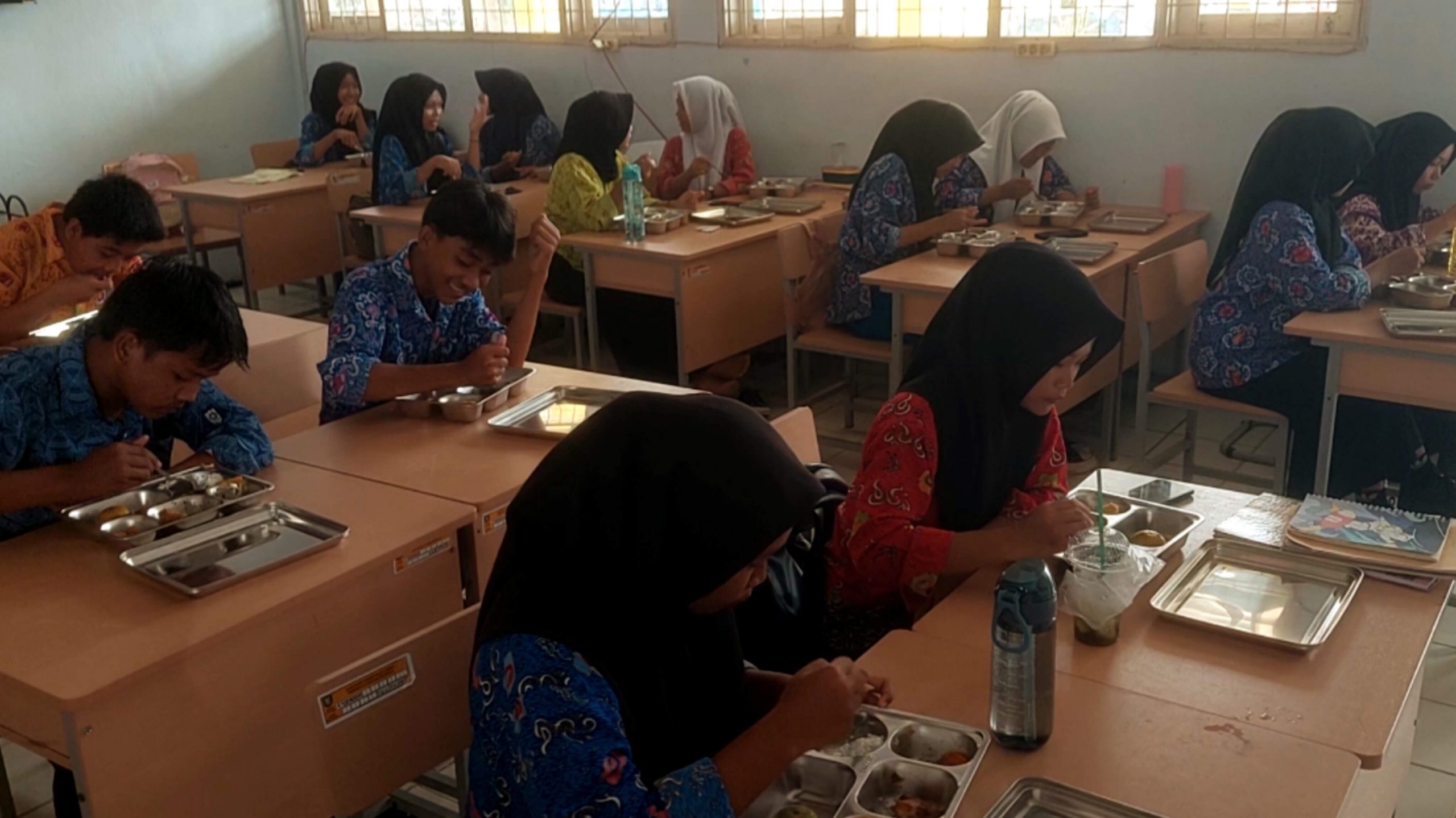 Menu MBG diterima pihak sekolah sekitar pukul 09.00 WIB dan mulai dibagikan ke siswa saat istirahat pertama, sekitar pukul 10.10 WIB.