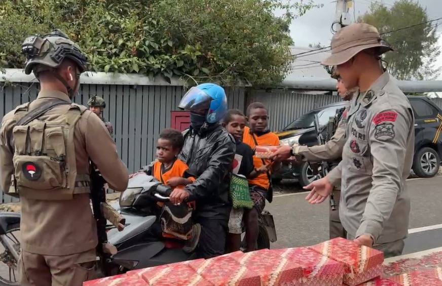 Enarotali, Paniai Timur — Dalam rangka memperingati Hari Ulang Tahun Korps Brimob Polri ke-80, Satgas Ops Damai Cartenz Sektor Paniai melaksanakan bakti sosial dengan membagikan paket makanan kepada warga di Jl. Aikai, Enarotali, Kabupaten Paniai Timur, pada Jumat (14/11/2025).