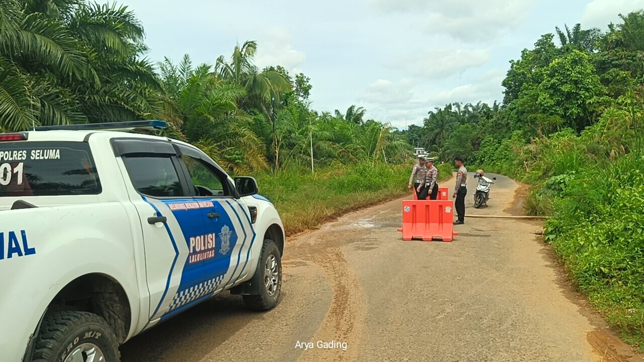 Seluma – Sat Lantas Polres Seluma menutup sementara badan jalan akses menuju dari Kelurahan Bunga Mas menuju ke Pasar Sembayat Kecamatan Seluma Timur.