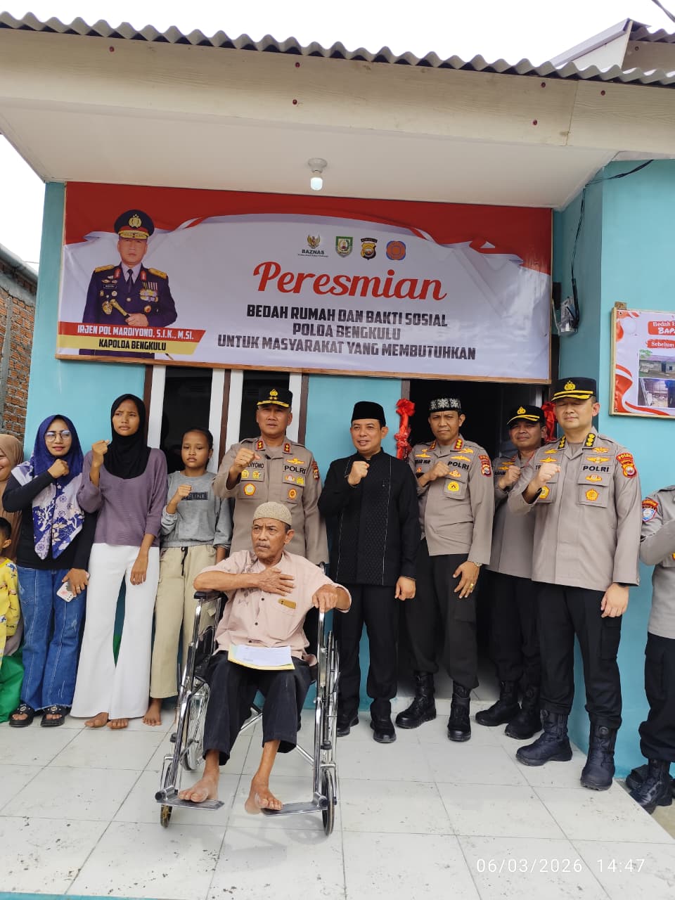 Kapolda Bengkulu, Irjen Pol. Mardiyono, S.I.K., M.Si. mengharapkan program bedah rumah ini membuat kehidupan Bapak Pandi dapat menjadi lebih layak, terutama mengingat kondisi kesehatannya.