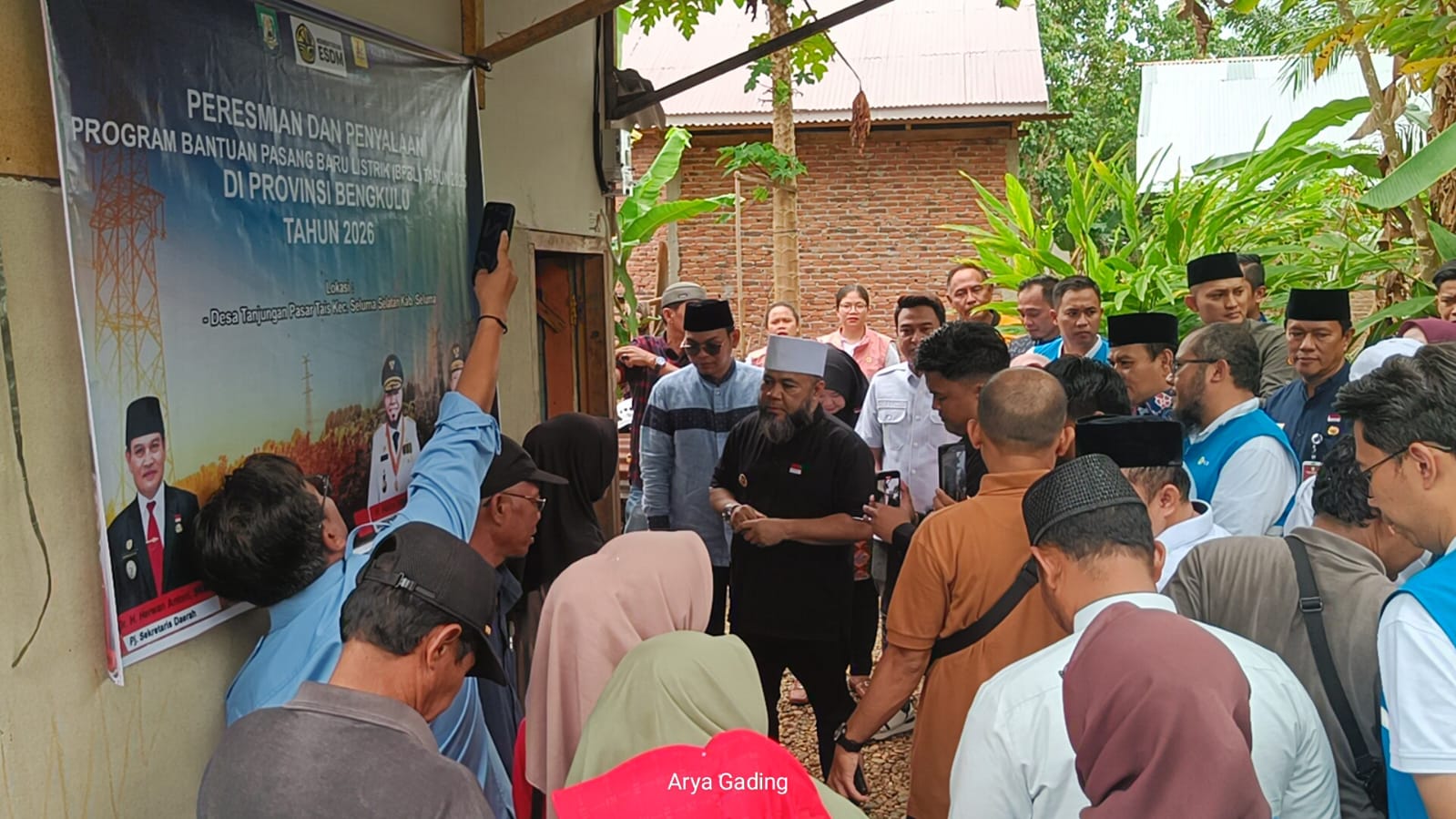 Seluma – Gubernur Bengkulu Helmi Hasan saat lawatan ke Kabupaten Seluma menyalurkan secara simbolis listrik gratis dari PLN kepada warga yang kurang mampu.