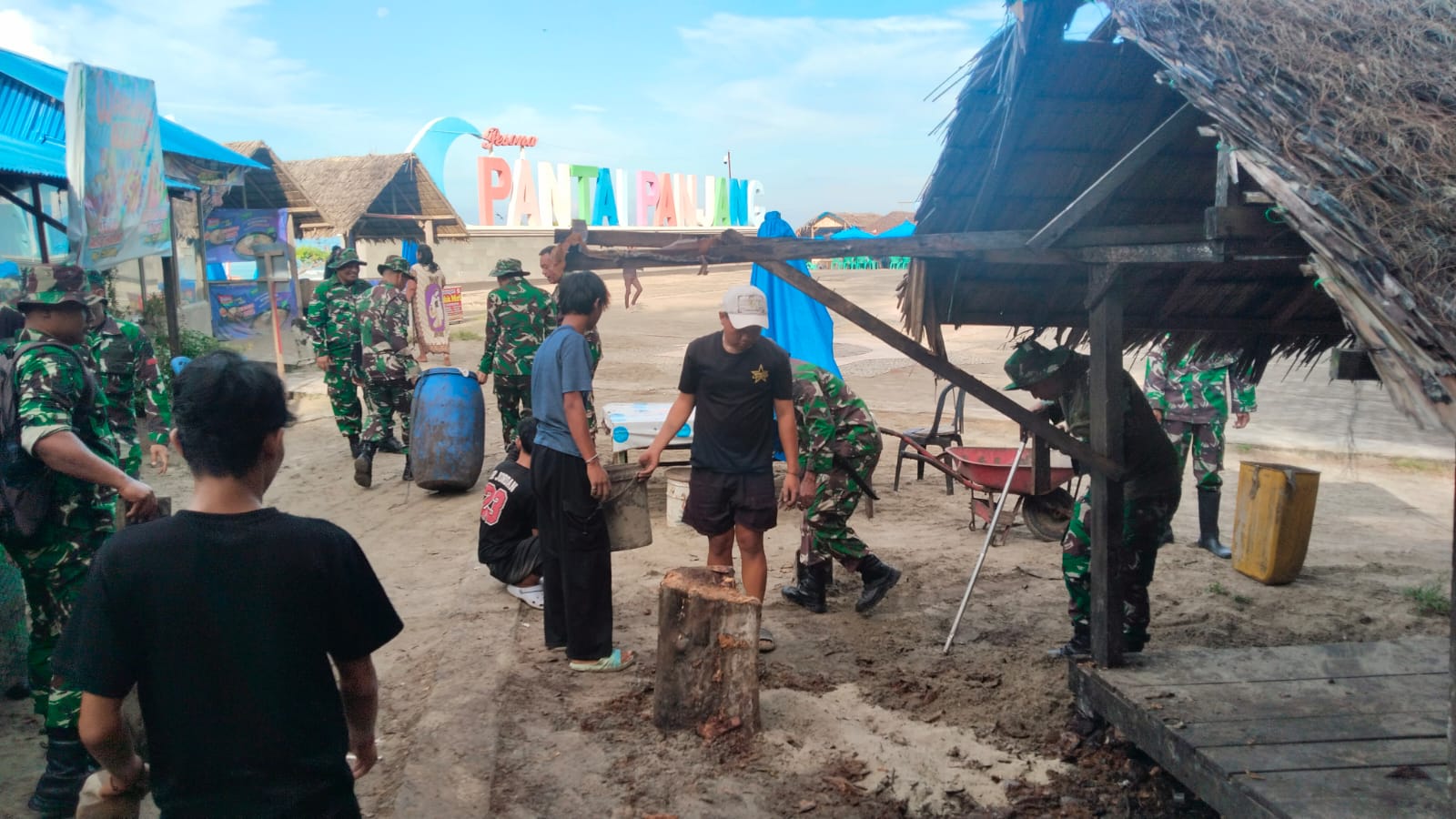 Bengkulu – Ratusan personel TNI dari Korem 041/ Gamas Bengkulu Kamis (5/2) pagi, menyerbu kawasan wisata Pantai Panjang Bengkulu.
