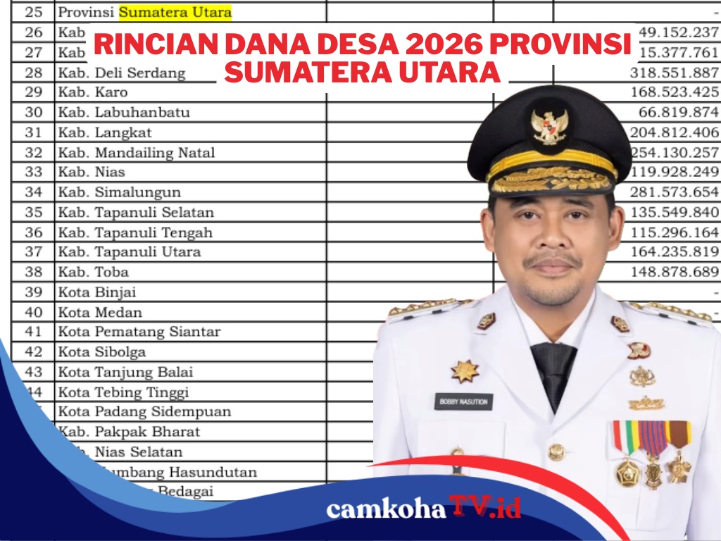 Tahun depan, ada 27 Kabupaten dan Kota di Provinsi Sumatera Utara akan menerima kembali kucuran dana desa tahun 2026, yang bertujuan untuk membiayai pembangunan dan pemberdayaan masyarakat.