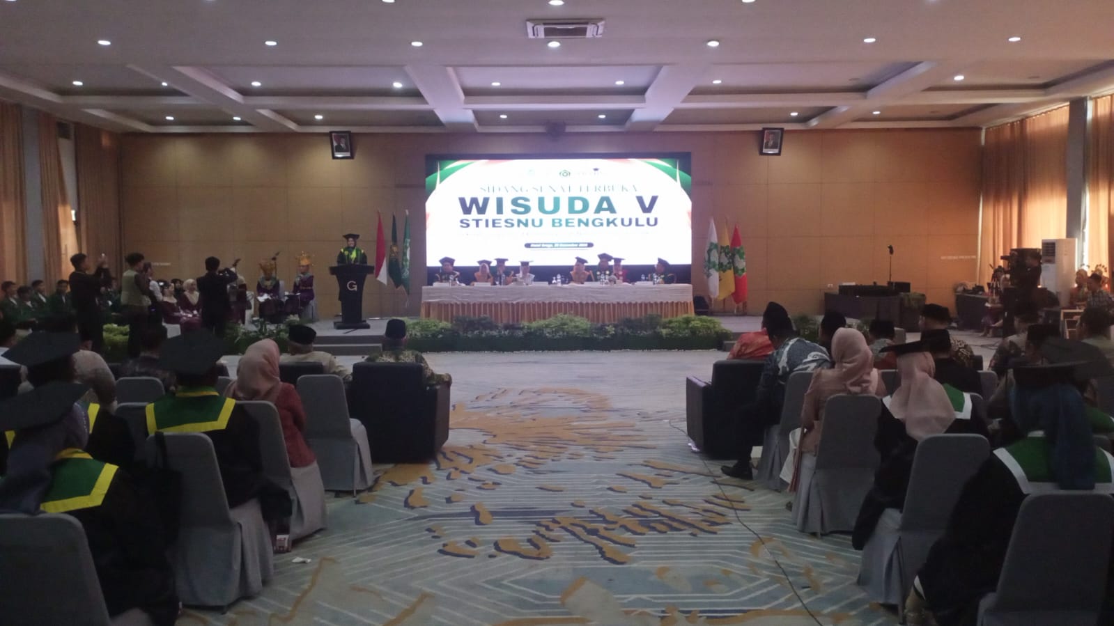 Proses wisuda angkatan ke V STIESNU Bengkulu dan Rapat Senat Terbuka berlangsung di Grage Hotel Bengkulu.