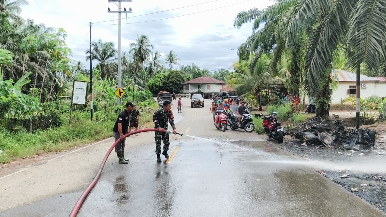 Sementara itu, Babinsa Koramil 04 Pondok Suguh, Serka Agus Whendi, mengatakan bahwa pihaknya bersama warga segera menuju lokasi setelah menerima laporan adanya kebakaran.