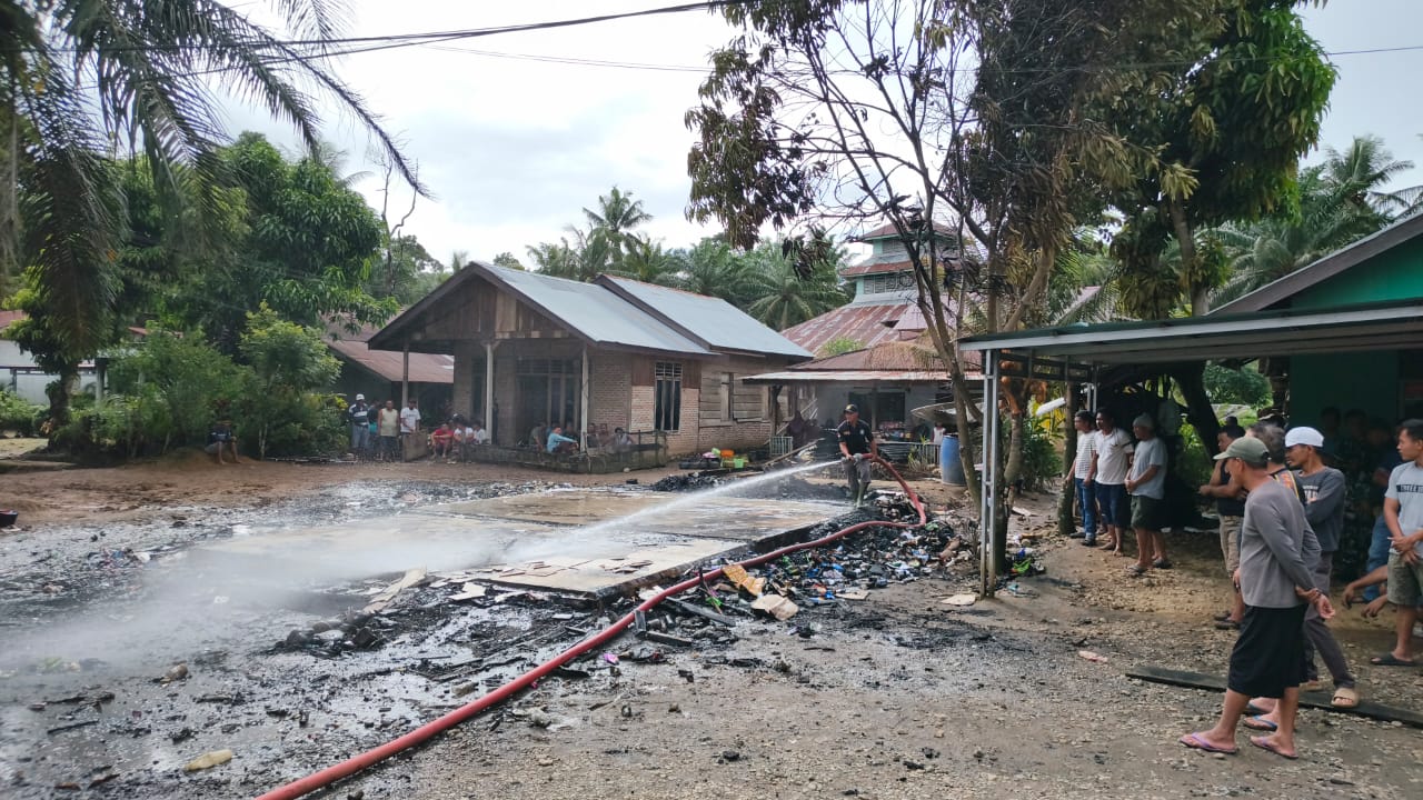 Setibanya di lokasi, petugas Damkar hanya bisa melakukan pendinginan serta pembersihan puing-puing bangunan yang telah hangus terbakar.